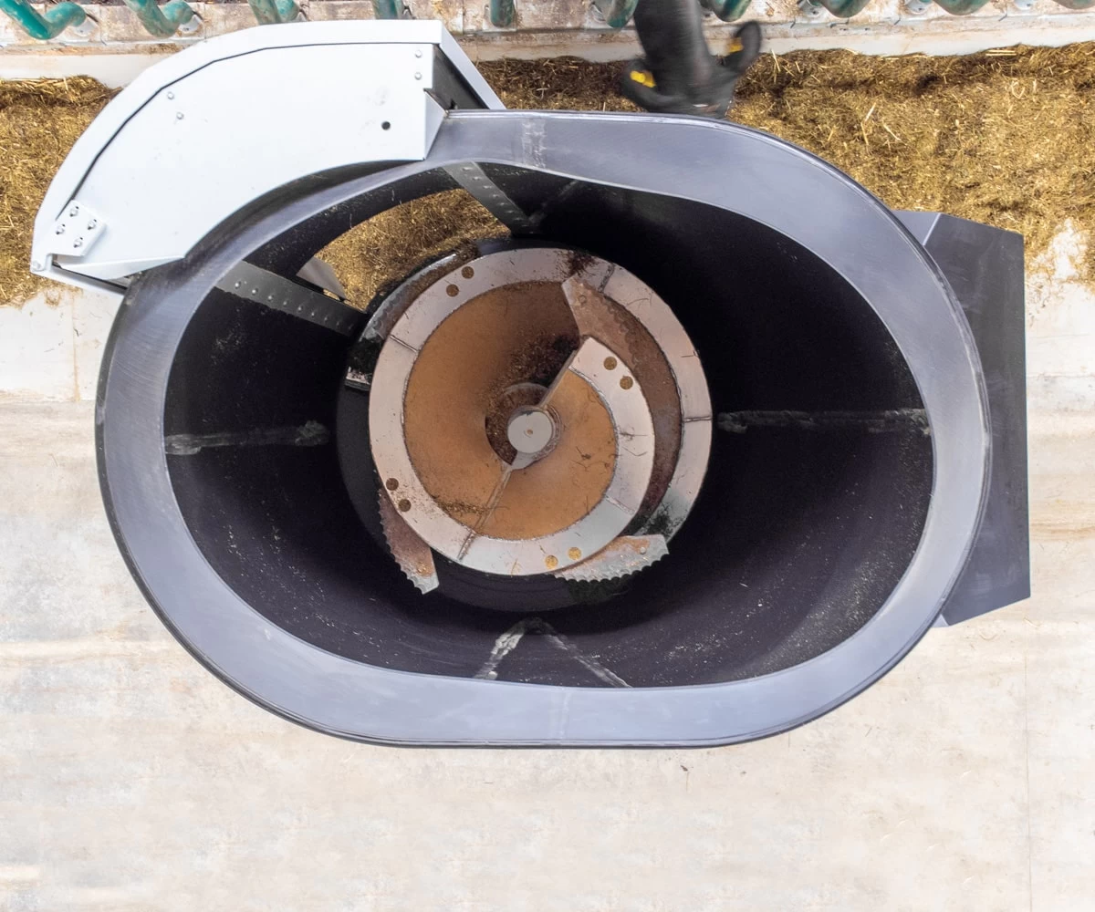 Корм идеально нарезается и смешивается с нужными концентратами и минеральными добавками. Затем Shuttle Eco полностью автоматически едет по кормовому столу и раздает корм.