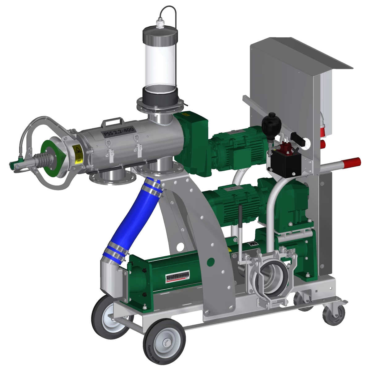Прессо-шнековый сепараторr ComPress (PSS-CP) 8090059 19.407,00 Состоящий из: 1 x Прессо-шнековый сепаратор PSS 2.2-400 с 2,2 кВт редукторным двигателем, cито 0,75 мм 1 x Роторный насос D-SW-70 E, с 2,2 кВт редукторным двигателем; 123 об./мин. вкл. соединительные детали из нержавеющей стали V2A Edelstahl 1.4301 соединения между насосом и сепаратором 1 x Устройство для измерения давления 1 x Шкаф управления для сепаратора вкл. частотный преобразователь для управления роторного насоса вкл. трёхфазный штекер 32A