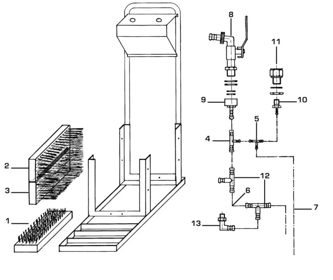 - состоит из корпуса со щетками, шарового крана, гибких силиконовых шлангов, системы форсунок